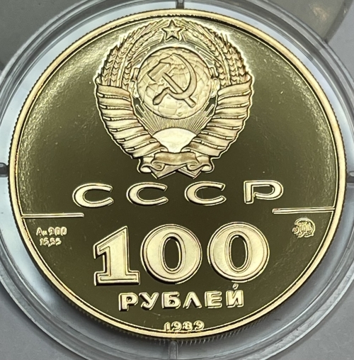 Золотая монета 100 рублей "Государственная печать Ивана III" 1989 год, ММД, 15,55 г., Au 900