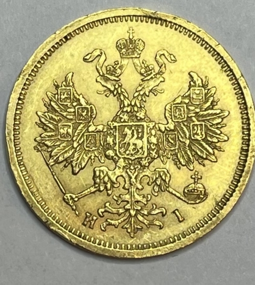 Золотая монета 5 рублей 1877г. СПБ-НI
