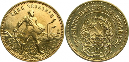 Золотая монета "Червонец Сеятель" 8,6г ЛМД 1981 год
