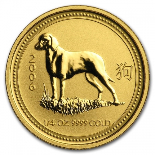 Золотая монета "Лунный календарь 1 - Год Собаки" 2006 год 1/4 унции
