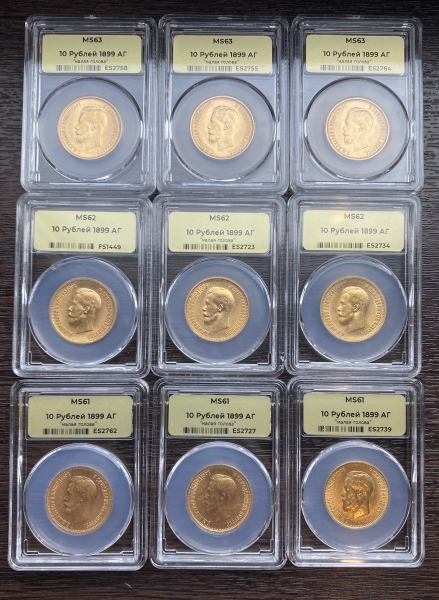 Вы всегда можете купить или продать, а также узнать текущую стоимость монеты - 'Золотая монета Николая II 10 рублей 1899 год в слабах ННР состояние MS 61 - 63' в г.Тверь (Тверская область). У нас Вы получите полную и необходимую консультация от квалифицированных специалистов и профессионалов, работающих на рынке инвестиций в драгметаллы уже долгое время. Мы стараемся предложить нашим клиентам лучшие цены выкупа и продажи на рынке (с минимальным спредом), а также гарантируем конфиденциальность всех проводимых сделок.