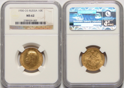 Вы всегда можете купить или продать, а также узнать текущую стоимость монеты - 'Золотая монета Николая II 10 рублей 1900 год состояние MS 62' в г.Тверь (Тверская область). У нас Вы получите полную и необходимую консультация от квалифицированных специалистов и профессионалов, работающих на рынке инвестиций в драгметаллы уже долгое время. Мы стараемся предложить нашим клиентам лучшие цены выкупа и продажи на рынке (с минимальным спредом), а также гарантируем конфиденциальность всех проводимых сделок.