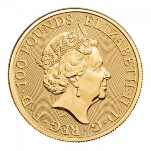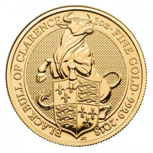 Золотая монета Великобритании 100 фунтов "Черный Бык" 2018 года 31,1 г.